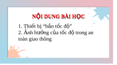 Sách Chân tr i ờ sáng tạo K F H ASHION GENERAL FOA OA H C Ọ C T NHIÊN Ự 7 Vietjack.com Vì sao ngư i ờ lái xe ph i ả đi u ề khi n ể xe trong gi i ớ h n ạ t c ố đ ộ cho phép và gi ữ kho ng ả cách an toàn gi a ữ hai xe? S ử d ng ụ thi t ế bị “bắn t c ố đ ” ộ đ ể ki m ể tra t c ố đ ộ các phư ng ơ ti n ệ giao thông có nh ng ữ u ư đi m ể gì? Vietjack.com NỘI DUNG BÀI H C Ọ 1. Thi t ế b ị“b n ắ t c đ ố ” ộ 2. Ảnh hư n ở g c a ủ t c ố đ t ộ rong an toàn giao thông
