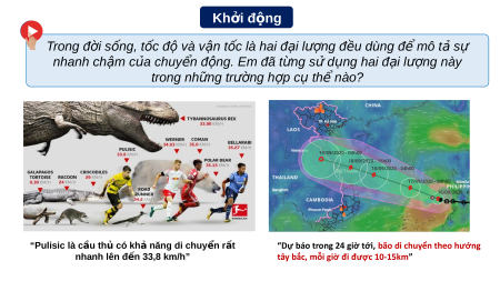 Bài 5: T c đ ố và ộ v n ậ t c ố Kh i đ ở n ộ g Trong đ i ờ s ng, ố t c ố đ ộ và v n ậ t c ố là hai đ i ạ lư ng ợ đ u ề dùng đ ể mô t ả s ự nhanh ch m ậ c a ủ chuy n ể đ n ộ g. Em đã t ng ừ s ử d ng ụ hai đ i ạ lư ng ợ này trong nh ng ữ trư ng ờ h p ợ c ụ th ể nào? “Pulisic là c u ầ th có kh ủ năng ả di chuy n ể r t ấ
