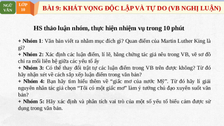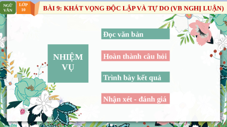 BÀI 9: KHÁT VỌNG ĐỘC LẬP VÀ TỰ DO (VB NGHỊ LUẬN) VĂN 10 Đọc văn bản NHIỆM Hoàn thành câu hỏi VỤ Trình bày kết quả