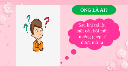 ÔNG LÀ AI? Sau khi trả lời một câu hỏi một miếng ghép sẽ được mở ra ? 1 2 ? 3 ? 4 ? Nhà thơ Pu-skin