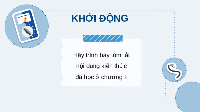 CHÀO MỪNG CÁC EM ĐẾN BUỔI HỌC NGÀY HÔM NAY! KHỞI ĐỘNG Hãy trình bày tóm tắt nội dung kiến thức đã học ở chương I.