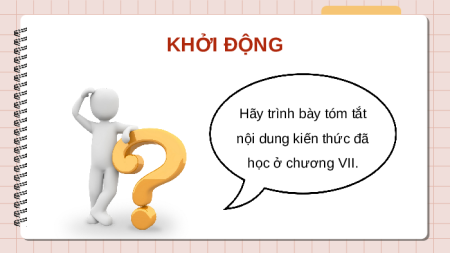 ĐẾN VỚI BUỔI HỌC HÔM NAY! KHỞI ĐỘNG Hãy trình bày tóm tắt nội dung kiến thức đã học ở chương VII.