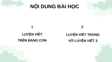 BÀI VIẾT 1: Ôn viết chữ hoa L NỘI DUNG BÀI HỌC 1 2 LUYỆN VIẾT LUYỆN VIẾT TRONG TRÊN BẢNG CON VỞ LUYỆN VIẾT 3