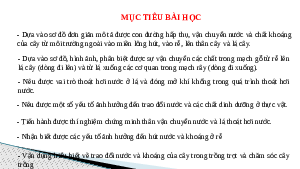 - Nêu được một số yếu tố ảnh hưởng đến trao đổi nước và các chất dinh dưỡng ở thực vật.