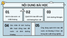 KHOÁNG Ở THỰC VẬT NỘI DUNG BÀI HỌC 01 02 03 Vai trò của nước và