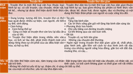 VÀ TRONG THƠ TRỮ TÌNH Clic T k to RI T Inse HỨ rt Y C Nour H GỮ e Vadin ĂN g PHIẾU BÀI TẬP Truyện thơ Truyện thơ dân gian Khái niệm Đặc điểm Yếu tố tự sự Truyện thơ Truyện thơ dân gian