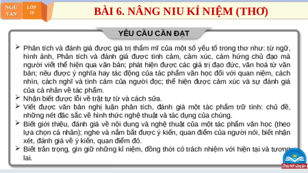 NGỮ LỚP VĂN 10 THƠ Bài 6: NÂNG NIU KỈ NIỆM LỚP 10
