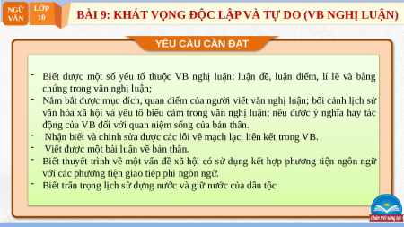 BÀI 9: KHÁT VỌNG ĐỘC LẬP VÀ TỰ DO (VB NGHỊ LUẬN) VĂN 10 YÊU CẦU CẦN ĐẠT