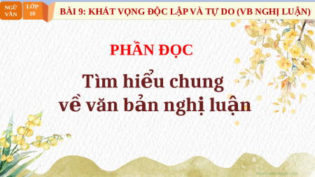BÀI 9: KHÁT VỌNG ĐỘC LẬP VÀ TỰ DO (VB NGHỊ LUẬN) VĂN 10 PHẦN ĐỌC Tìm hi u chung ể v văn b ề n ng ả h lu ị n ậ https://www.freeppt7.com NGỮ LỚP