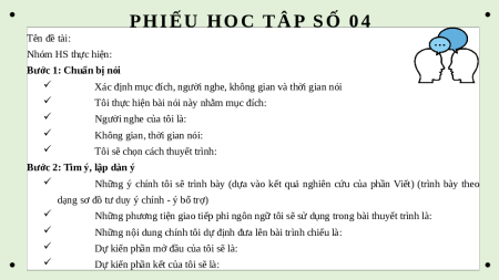 P H I Ế U H Ọ C T Ậ P S Ố 0 4 Tên đề tài: Nhóm HS thực hiện: