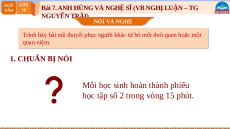 Bài 7. ANH HÙNG VÀ NGHỆ SĨ (VB NGHỊ LUẬN – TG NGUYỄN TRÃI) VĂN 10 NÓI VÀ NGHE NGỮ LỚP