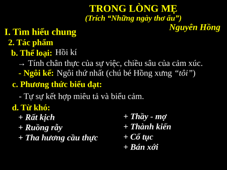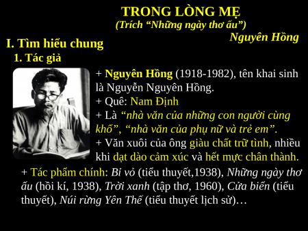 (Trích “Những ngày thơ ấu”) Nguyên Hồng TRONG LÒNG MẸ