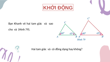 Bạn Khanh vẽ hai tam giác và sao cho và (Hình 79).