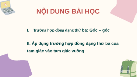 BÀI 8. TRƯỜNG HỢP ĐỒNG DẠNG THỨ BA CỦA TAM GIÁC NỘI DUNG BÀI HỌC