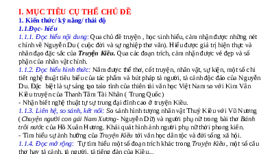 I. MỤC TIÊU CỤ THỂ CHỦ ĐỀ