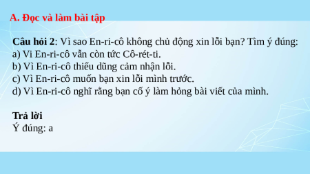 Câu hỏi 1: Vì sao En-ri-cô nổi giận với Cô-rét-ti? Tìm ý đúng: