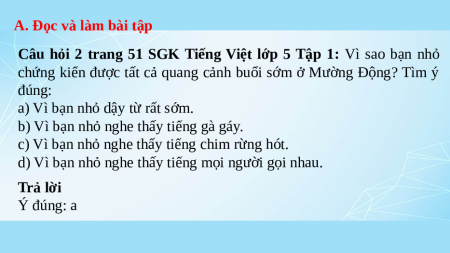 A. Đọc và làm bài tập * Câu hỏi và bài tập