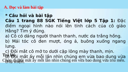 điểm ngoại hình nào nói lên tính cách của cô giáo Hằng? Tìm ý đúng.