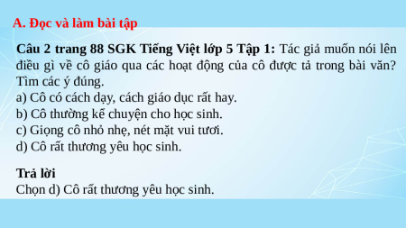 Câu 1 trang 88 SGK Tiếng Việt lớp 5 Tập 1: Đặc