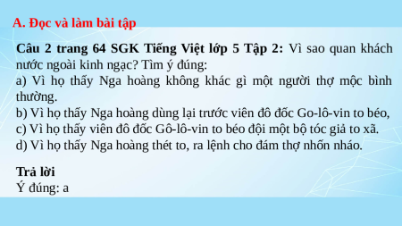 Câu 2 trang 64 SGK Tiếng Việt lớp 5 Tập 2: Vì sao quan khách