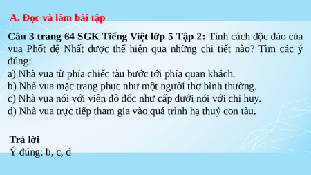 A. Đọc và làm bài tập * Câu hỏi và bài tập
