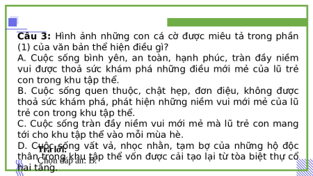 Đọc văn bản “Những con cá cờ” (trang 107 - 110 sgk