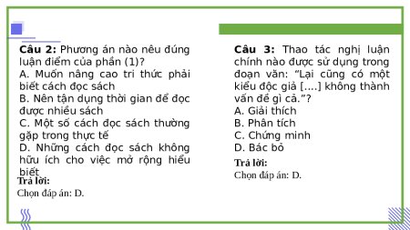 D. Những cách đọc sách không D. Bác bỏ