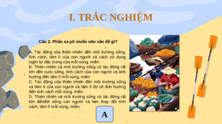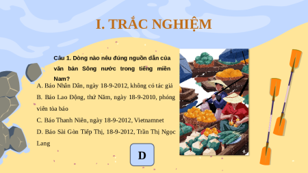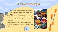 Quan sát hình ảnh sau và cho biết: Em biết gì về sông nước miền Nam? Hãy chia sẻ. I. TRẮC NGHIỆM I. TRẮC NGHIỆM