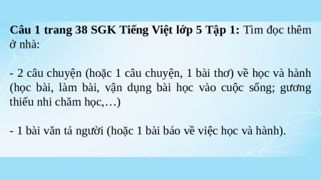 Câu 1 trang 38 SGK Tiếng Việt lớp 5 Tập 1: Tìm đọc thêm ở nhà:
