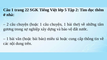 Câu 1 trang 22 SGK Tiếng Việt lớp 5 Tập 2: Tìm đọc thêm ở nhà: