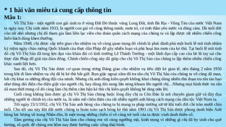 * 1 bài văn miêu tả cung cấp thông tin Mẫu 1: