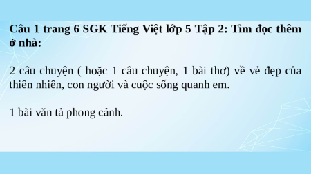 Câu 1 trang 6 SGK Tiếng Việt lớp 5 Tập 2: Tìm đọc thêm ở nhà: