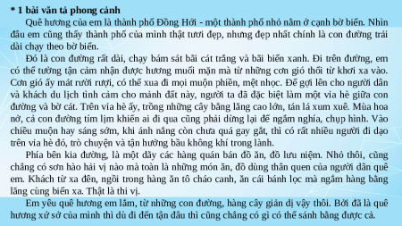 Quê hương của em là thành phố Đồng Hới - một thành phố nhỏ nằm ở cạnh bờ biển. Nhìn