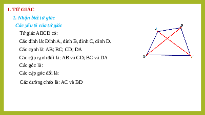 Các đường chéo là: AC và BD I. TỨ GIÁC