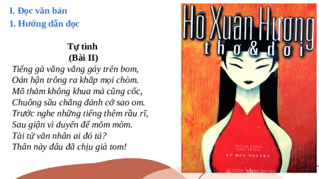 học em biết viết về hình ảnh người phụ nữ. Nêu cảm nhận của em về họ? Tự Tình (Bài II) H ồ Xuân Hương I. Đọc văn bản 1. Hướng dẫn đọc Tự tình (Bài II)
