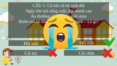 Buồn vui lại khéo rủ nhau khóc cười – Là gì? Đôi môi Đôi mắt Cái tay Cái chân