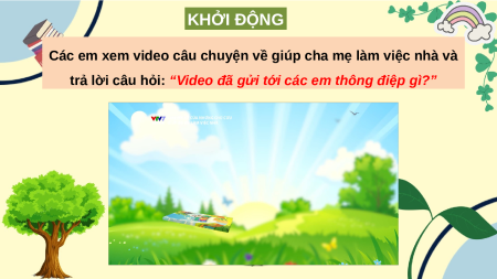 Các em xem video câu chuyện về giúp cha mẹ làm việc nhà và