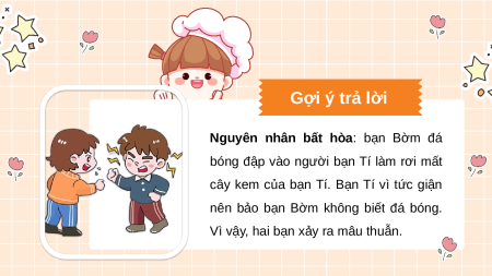 Vì vậy, hai bạn xảy ra mâu thuẫn. Gợi ý trả lời