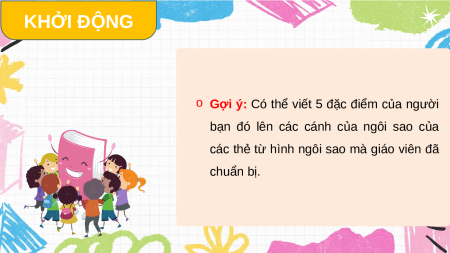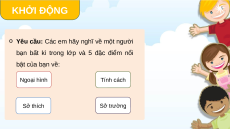bạn bất kì trong lớp và 5 đặc điểm nổi bật của bạn về: Ngoại hình Tính cách Sở thích Sở trường KHỞI ĐỘNG