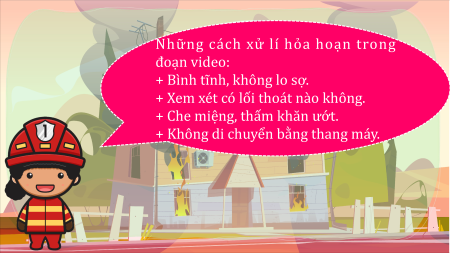Những cách xử lí hỏa hoạn trong đoạn video: + Bình tĩnh, không lo sợ.