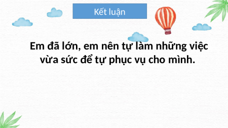 Em đã lớn, em nên tự làm những việc