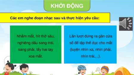 (luyện nhìn xa, nhìn phải, xoa mắt. nhìn trái,...). KHỞI ĐỘNG