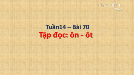 TIẾNG VIỆT 1 Tập 1 Tuần14 – Bài 70 Tập đọc: ôn - ôt HÁI HOA DÂN CHỦ mẹ con quả lúa biệ y xat ên nh chim viên y títót ến chín thự phấn chim y ngựa chim hót Bài 70: ôn - ôt on ôn ot ôt 1. Khám phá thôn ôn xóm ôn thôn ôn th ôn ô n thờ - ôn - thôn ô - n - ôn