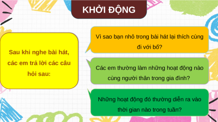 cùng bà và mẹ, đi câu cá cùng ông,…