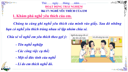 Chia sẻ về nghề em yêu thích theo gợi ý: - Tên nghề nghiệp