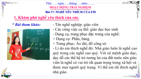 - Lí do em thích nghề đó: Nhà giáo luôn là nghề cao