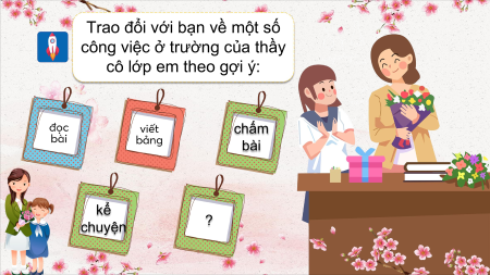 công việc ở trường của thầy cô lớp em theo gợi ý: chấm bài kể chuyện ?