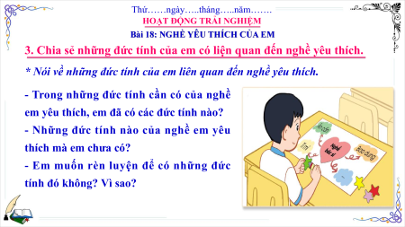 3. Chia sẻ những đức tính của em có liện quan đến nghề yêu thích.