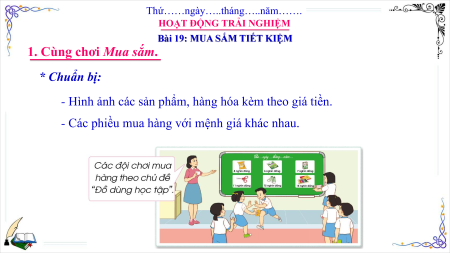 1. Cùng chơi Mua sắm. * Chuẩn bị:
