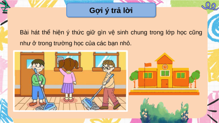 Nghe video về bài hát Giữ gìn vệ sinh trường lớp và trả lời câu hỏi sau: